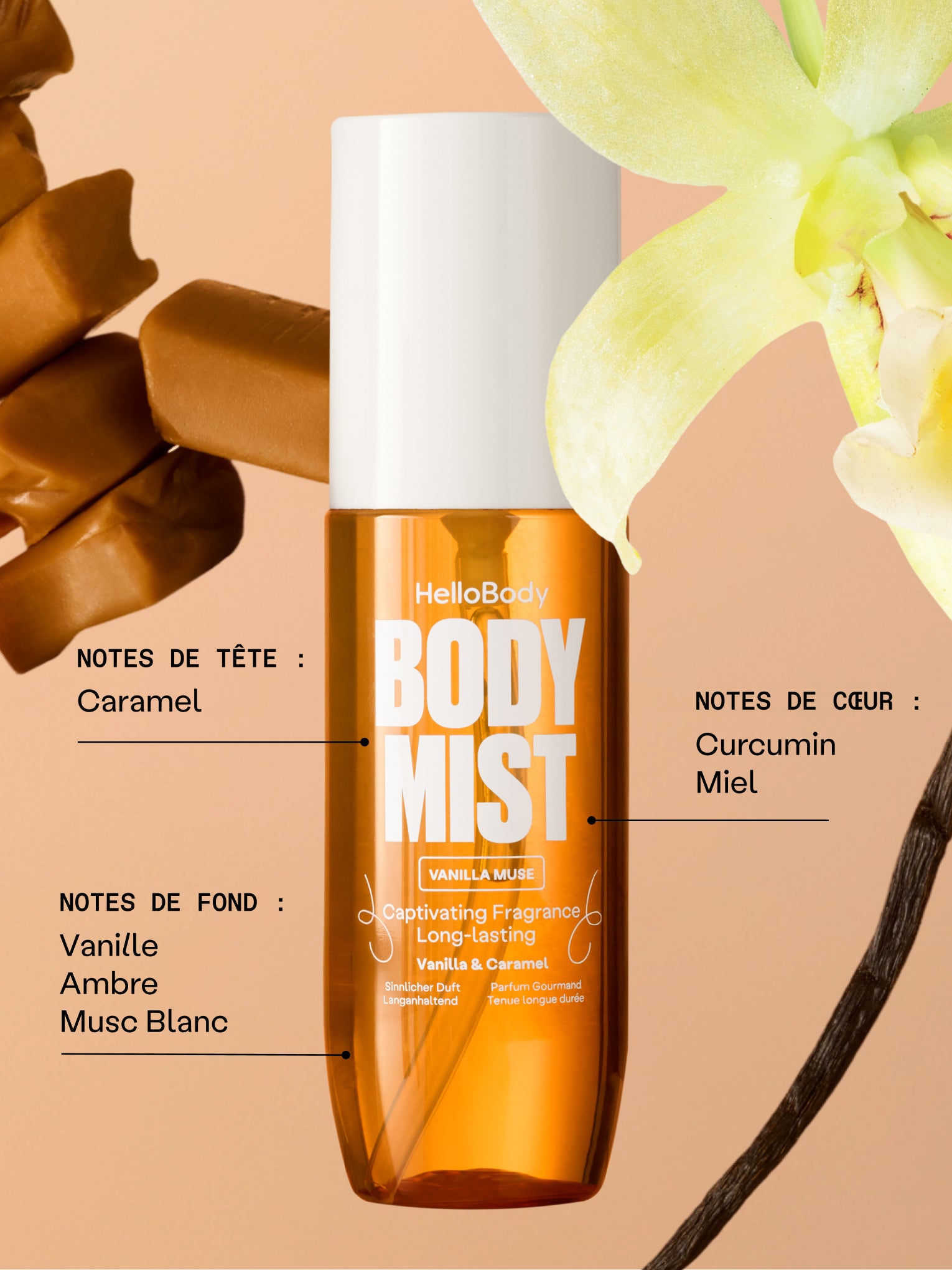 Chez HelloBody, on sait que vous adorez le parfum de nos produits, c’est ce qui vous fait revenir. Alors on a créé cette brume : 100% axée sur le parfum et les sensations, pour une vibe fraîche et gourmande à tout moment.