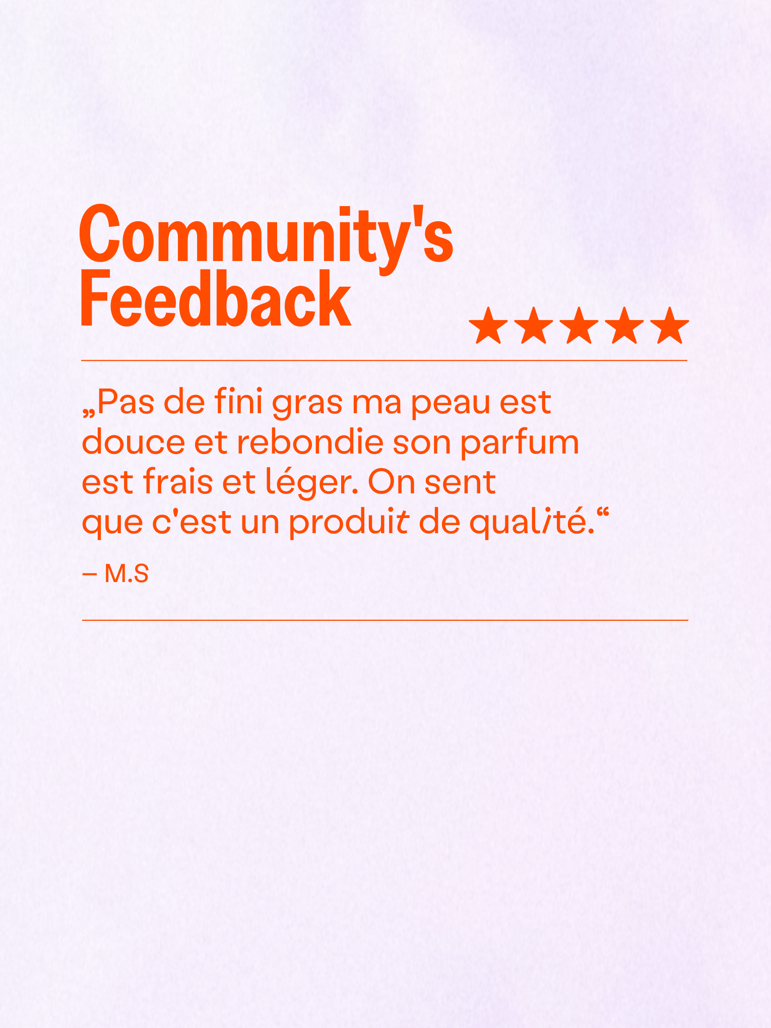 Chaque matin, sur peau propre, applique une petite quantité de crème sur ton visage et ton cou. Massedélicatement jusqu’à absorption complète du produit.