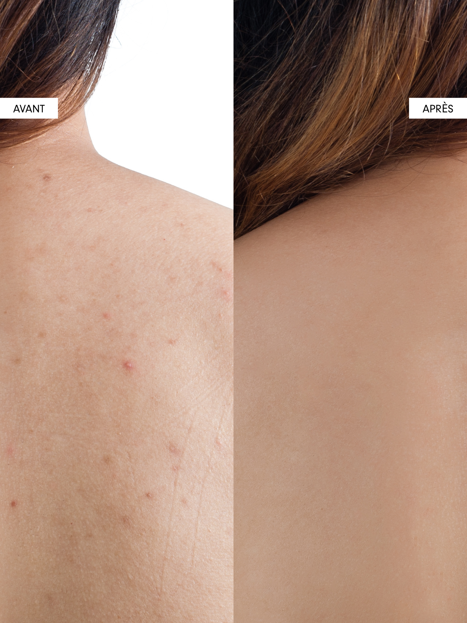 - Agit efficacement contre les boutons sur le corps et boutons d’après rasage sur les fesses, le dos, les bras ou les jambes
